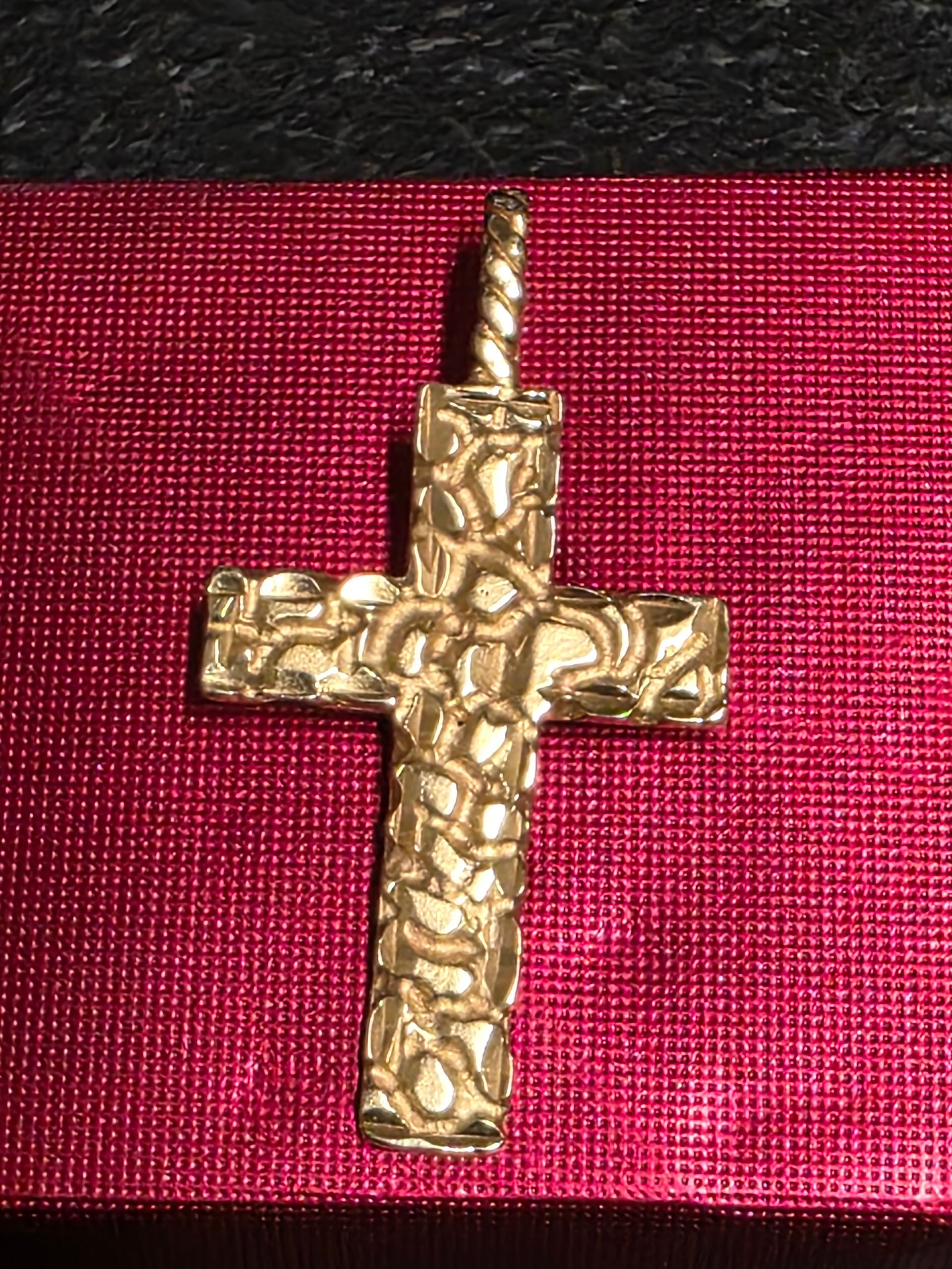 14k Yellow Gold Hammered Cross Pendant !!!